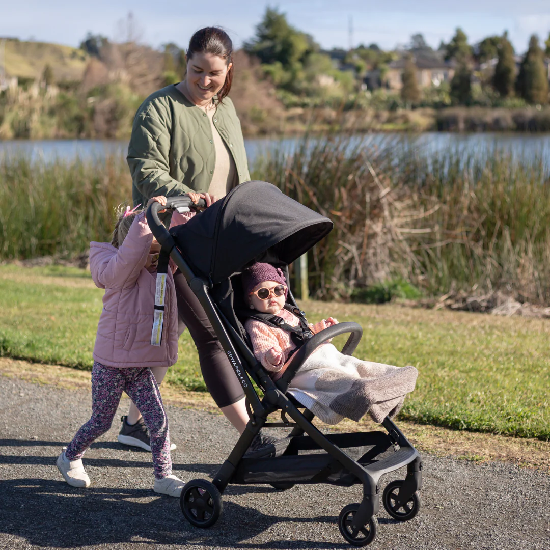 The Edwards & Co Lucci is made for parents who want the compact size without compromising on comfort. It boasts a sleek, streamlined design with a compact fold thatโs ideal for overhead bins, travel bags, and tight storage spaces. With features like a reclining seat that lays nearly flat with multiple recline positions, swivel wheels for great manoeuvrability, and an adjustable handlebar, the Lucci is equally at home in the city or at the airport. Itโs suitable from birth (with newborn insert which is sold separately) and accommodates kids up to 22kg, so it lasts well into toddler years and beyond. Throw in a generous storage basket and sturdy frame and youโve got a stroller that nails both travel and every day life. Whether itโs a quick trip to the shops for nappies and wipes, or a long haul flight to visit family on the other side of the planet, the Lucci is designed to perfection.