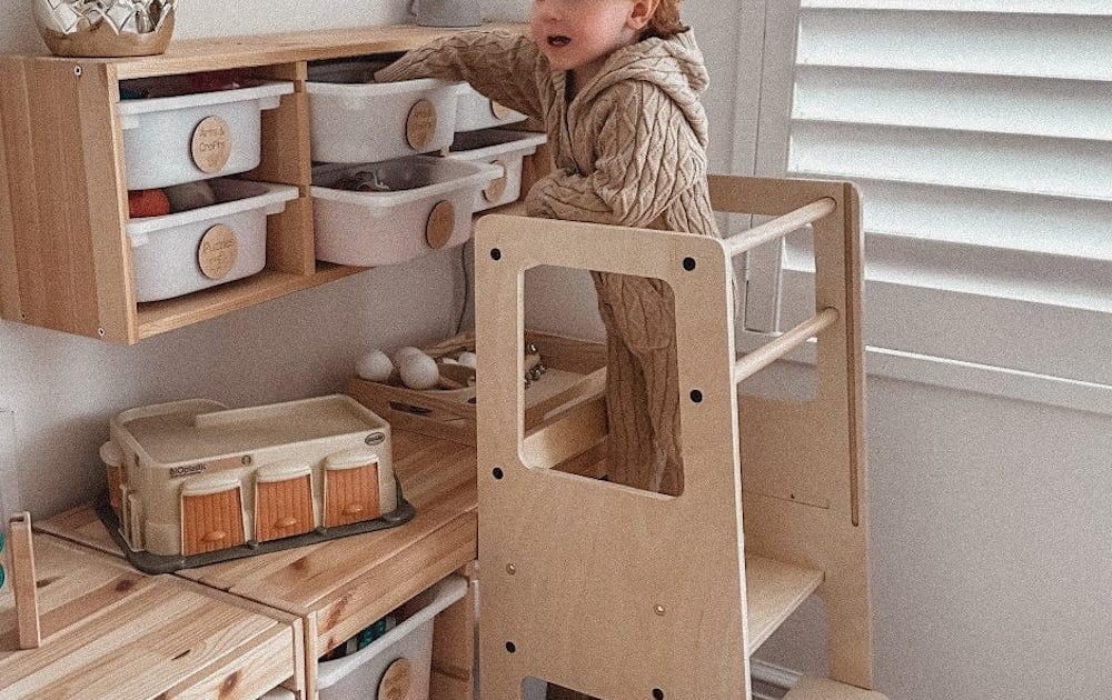 Consider how your child will be using the learning tower. If theyβll be helping out with meal prep, a Montessori learning tower designed for kitchen tasks might be the best option. For kids who enjoy creative play, look for a model that supports arts, crafts, and other activities beyond the kitchen. You can also get ones with removable chalkboards or other play elements.